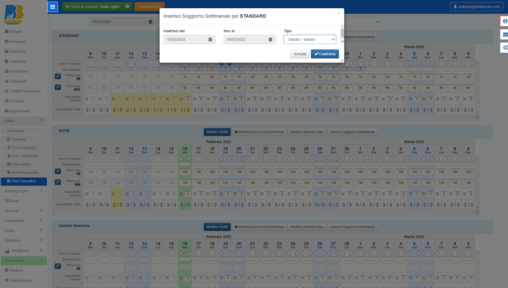 – In Piani Giornalieri è possibile impostare i soggiorni settimanali per tutti i giorni della settimana e non solo da sabato a sabato e da domenica a domenica