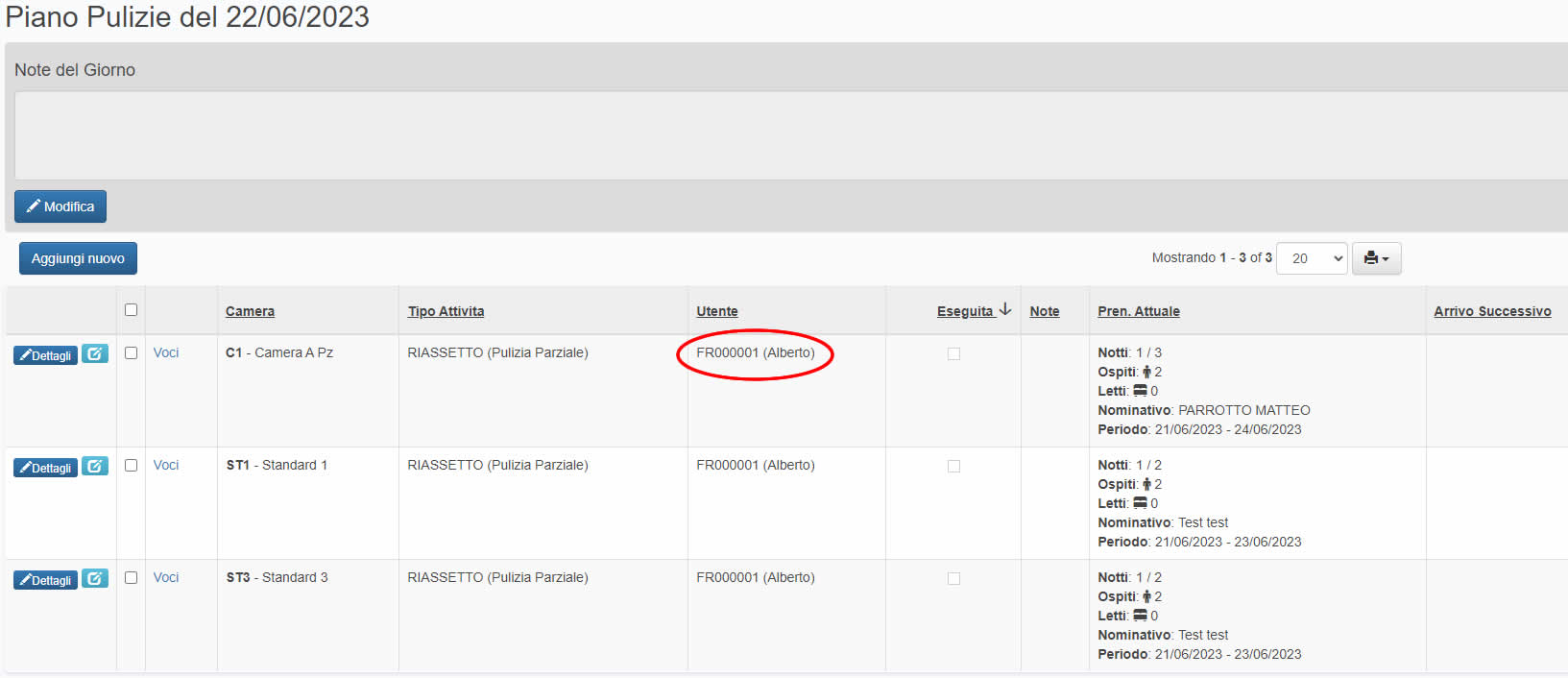 L’ALIAS sarà visibile nel PIANO PULIZIE di BBPlanner (come da immagine sotto)